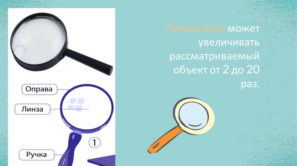 Ручная лупа можетувеличивать