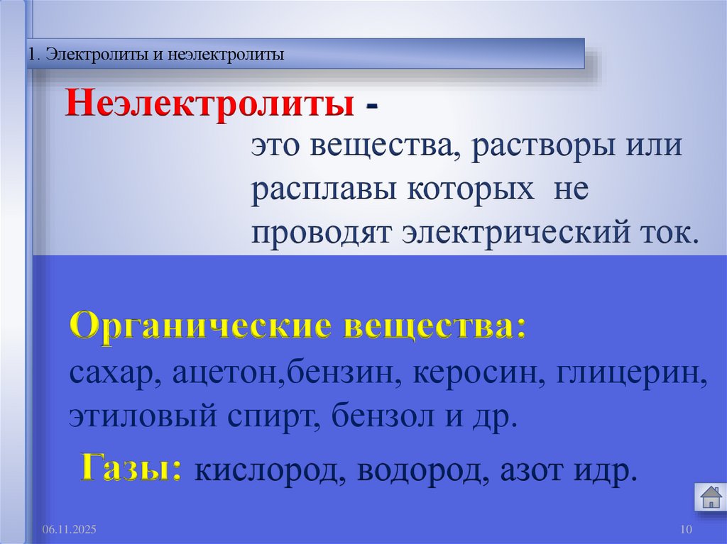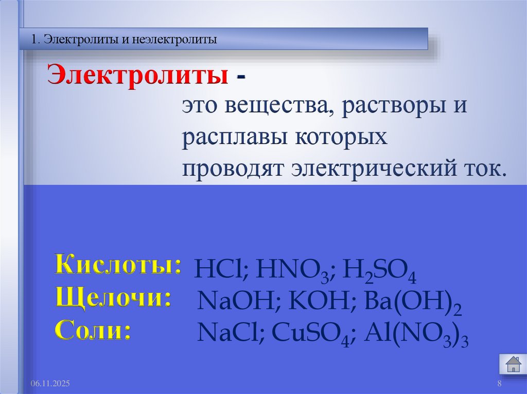 1. Электролиты и неэлектролитыНеэлектролиты -