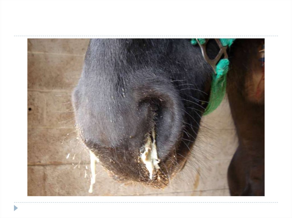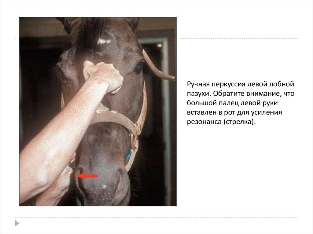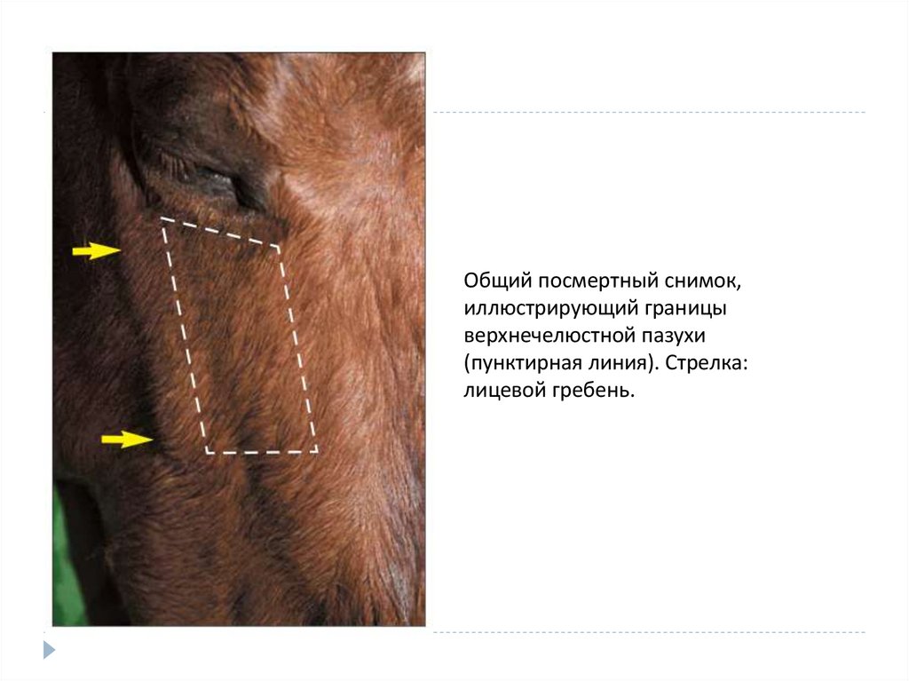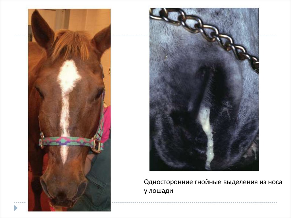 Лошадь с наружным вздутием гортанного мешка (стрелки).71. Течение