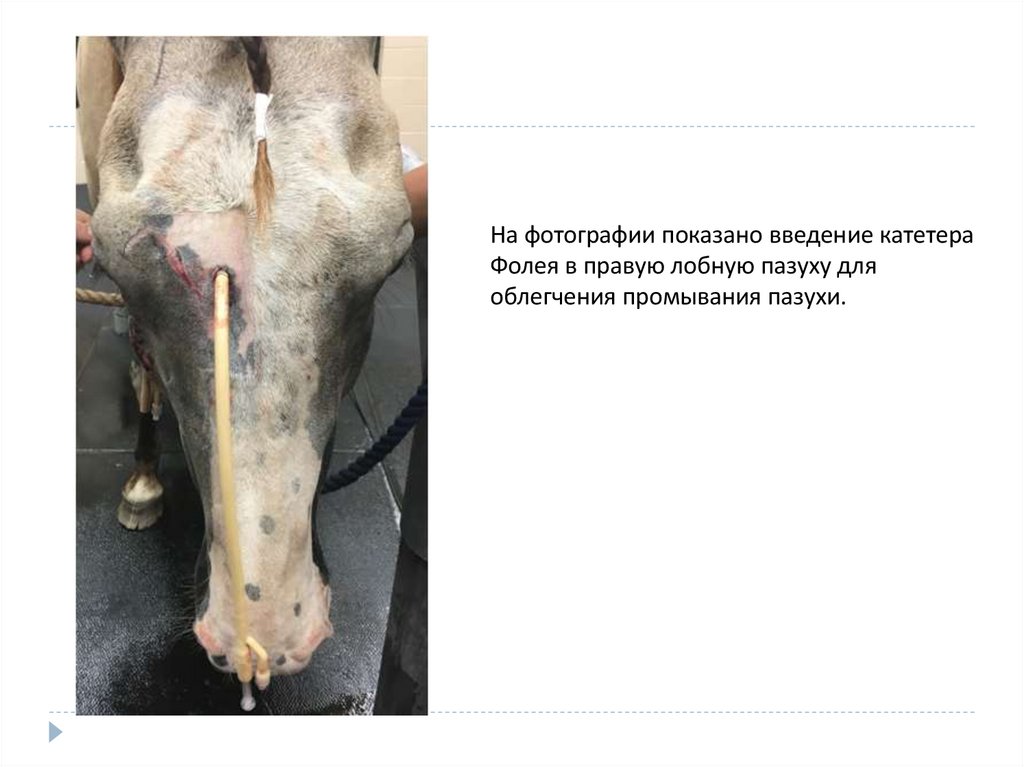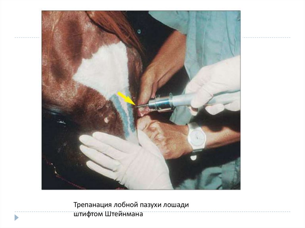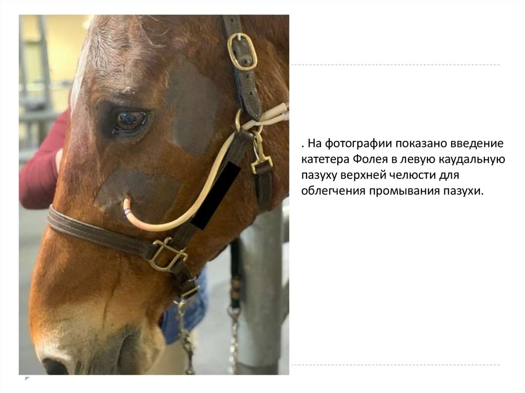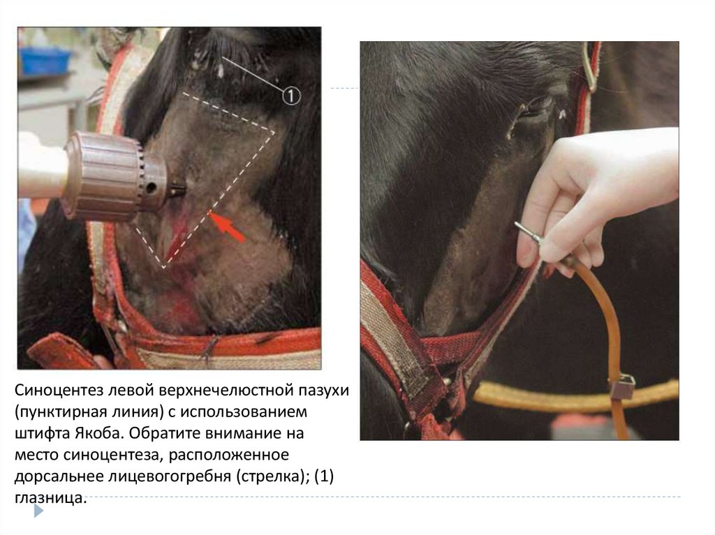 Лошадь с наружным вздутием гортанного мешка (стрелки).71. Течение
