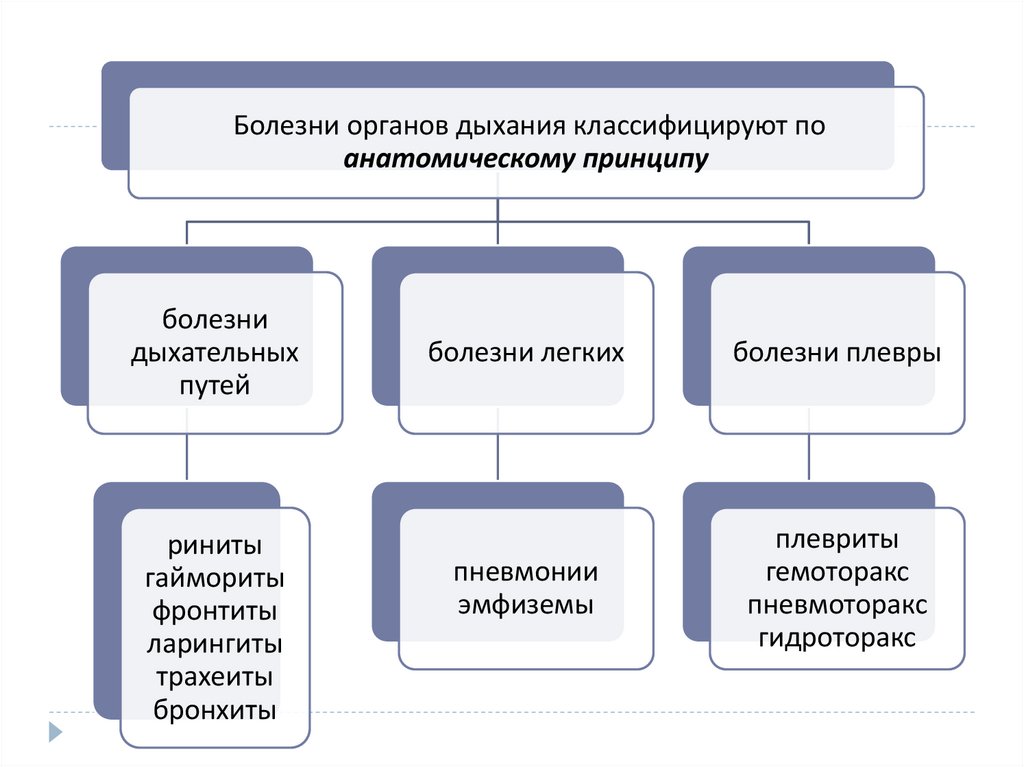 Болезни органов дыхания классифицируют поанатомическому принципу