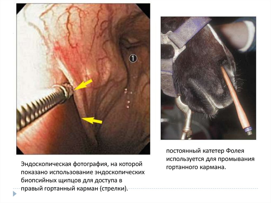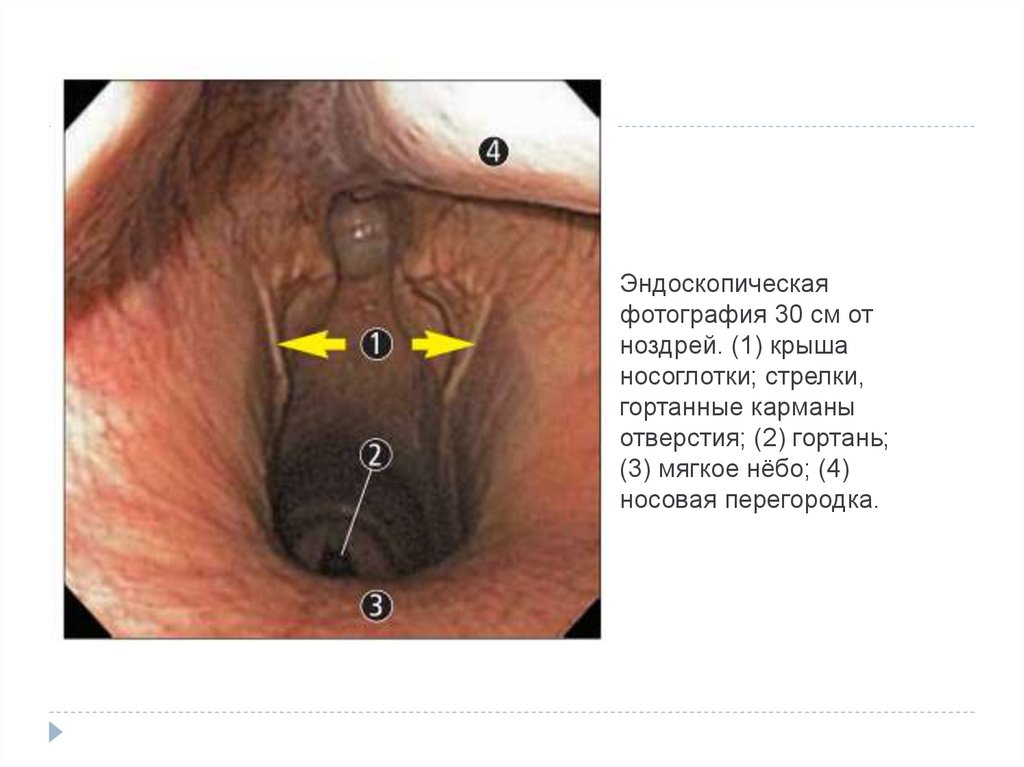 нарушения функции устья. Выраженный отёк гортанных мешков может