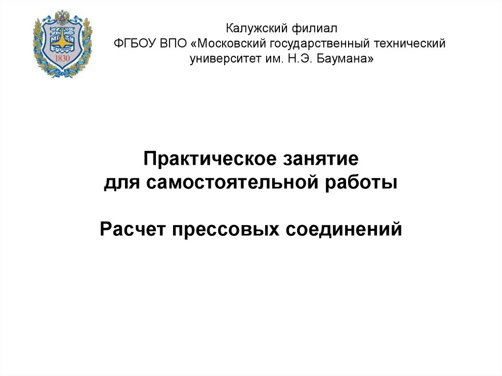 1. Практическое занятие для самостоятельной работы Расчет прессовых соединений