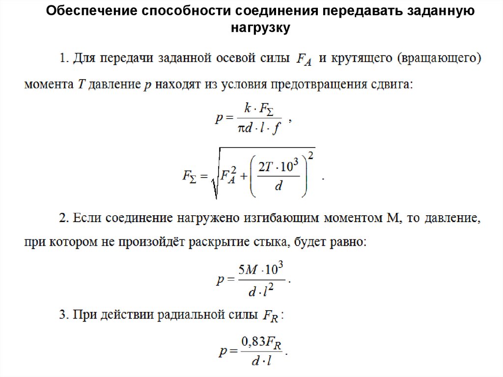 Обеспечение способности соединения передавать заданнуюнагрузку