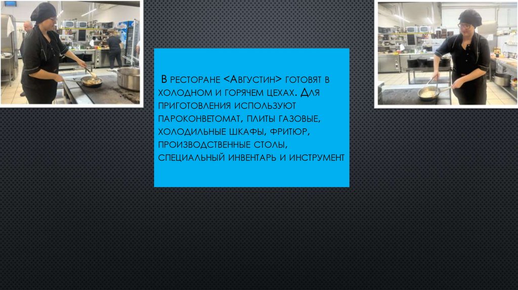 В РЕСТОРАНЕ <АВГУСТИН> ГОТОВЯТ ВХОЛОДНОМ И ГОРЯЧЕМ ЦЕХАХ. ДЛЯ