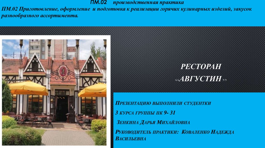 ПМ.02 производственная практикаПМ.02 Приготовление, оформление и подготовка к реализации горячих кулинарных изделий, закусок