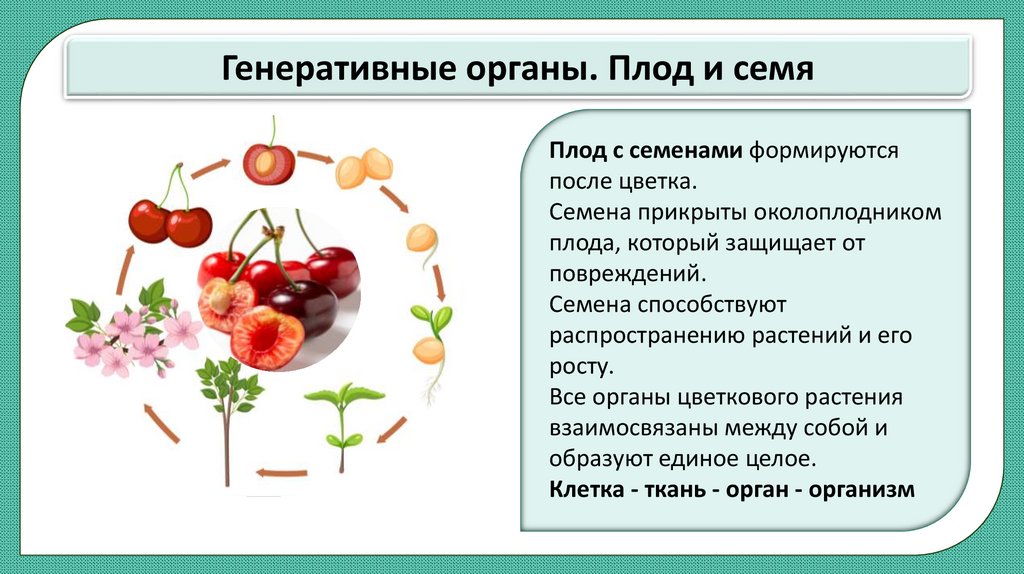 Генеративные органы. Плод и семяПлод с семенами формируются