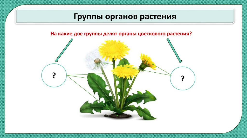 Группы органов растенияНа какие две группы делят органы цветкового растения?