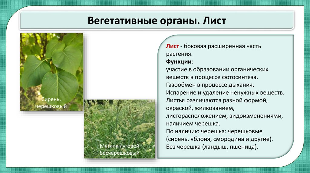 ОРГАНЫ ЦВЕТКОВЫХ РАСТЕНИЙВЕГЕТАТИВНЫЕ ОРГАНЫ