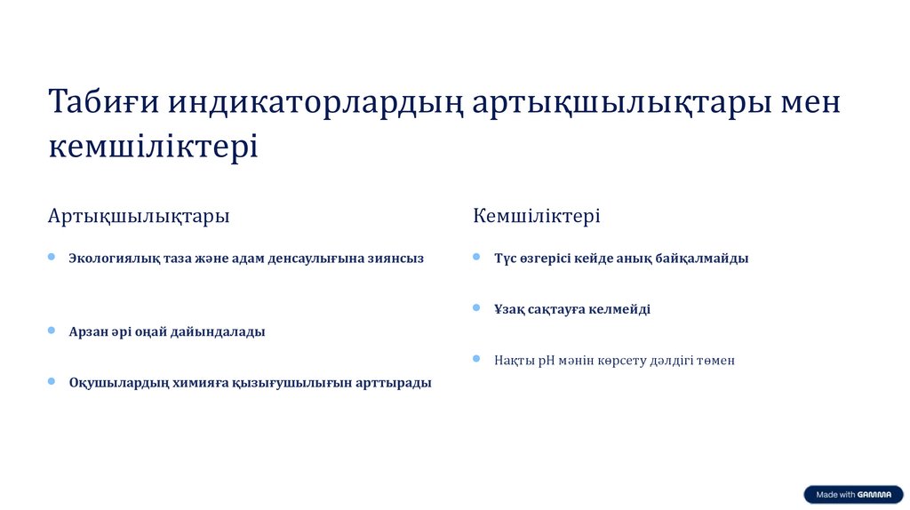 Табиғи индикаторлардың артықшылықтары менкемшіліктері