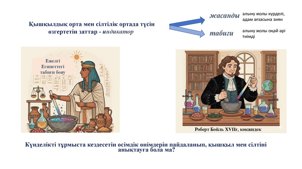 Қышқылдық орта мен сілтілік ортада түсінөзгертетін заттар - индикатор