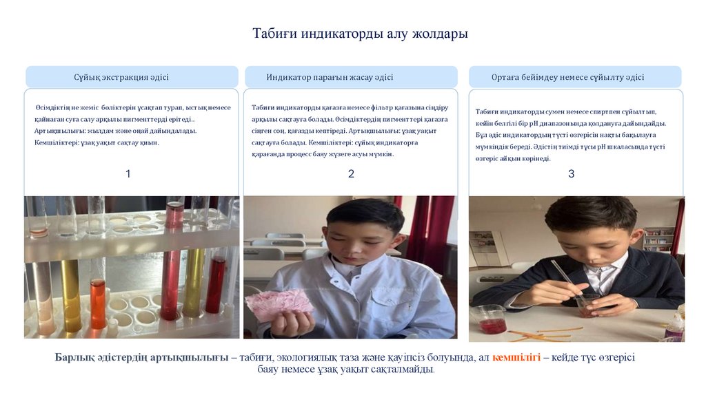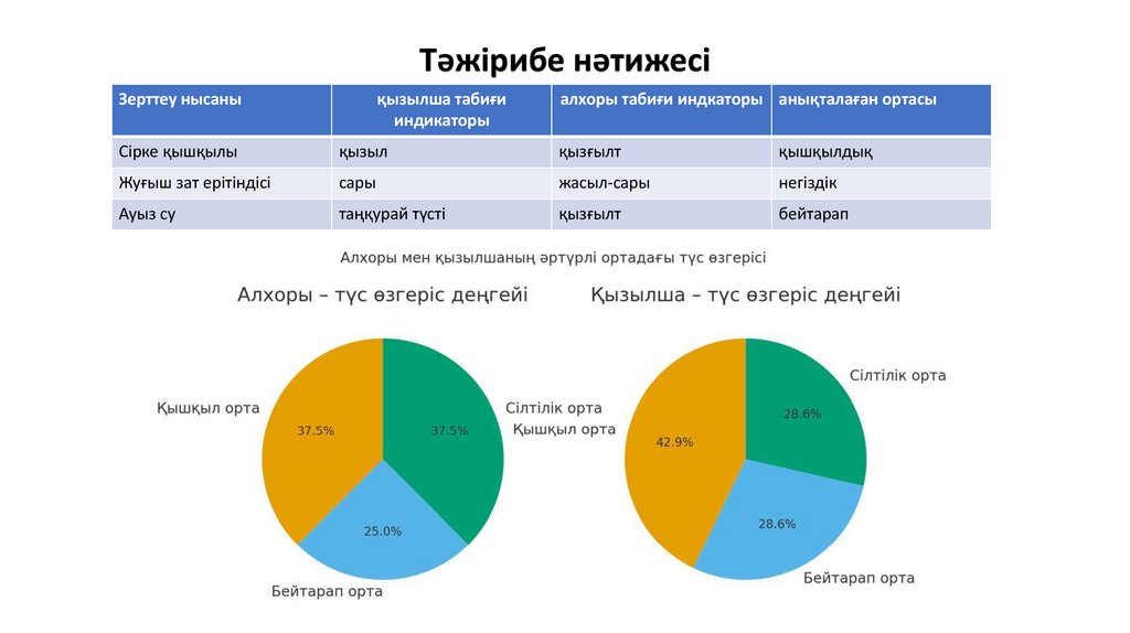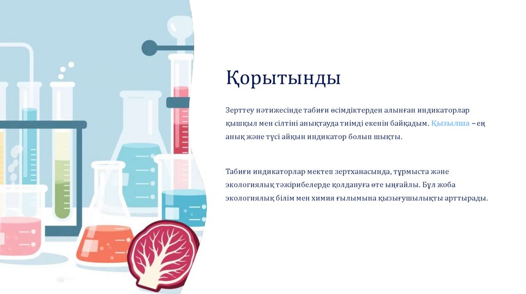 ҚорытындыЗерттеу нәтижесінде табиғи өсімдіктерден алынған индикаторлар