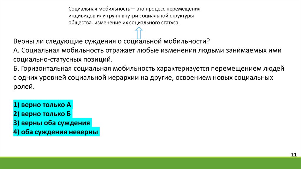 А. Социальная мобильность отражает любые изменения людьми занимаемых ими