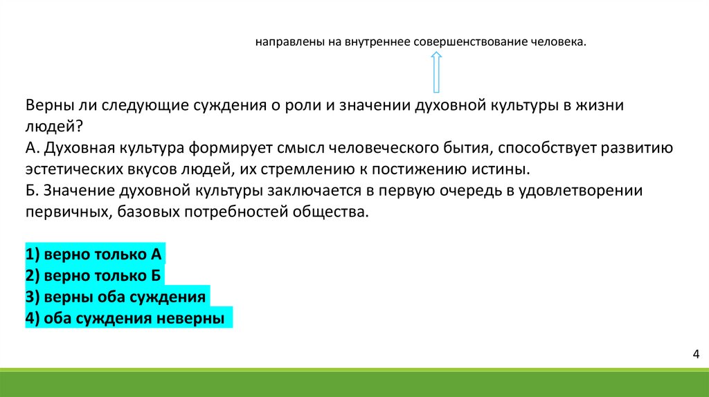 направлены на внутреннее совершенствование человека.Верны ли следующие суждения о роли и значении духовной культуры в жизни