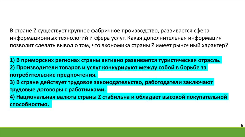 позволит сделать вывод о том, что экономика страны Z имеет рыночный характер?