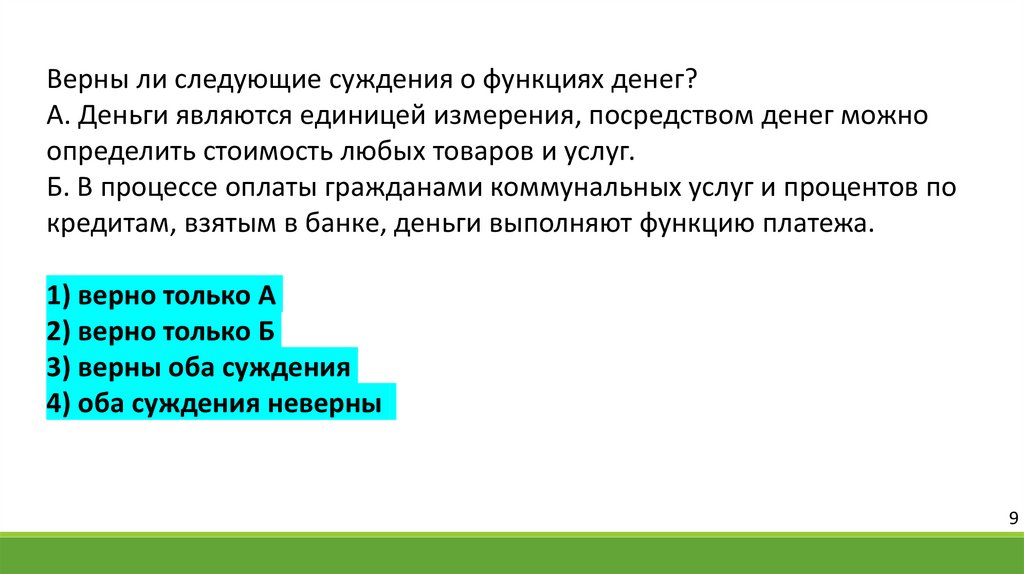 Верны ли следующие суждения о функциях денег?А. Деньги являются единицей измерения, посредством денег можно