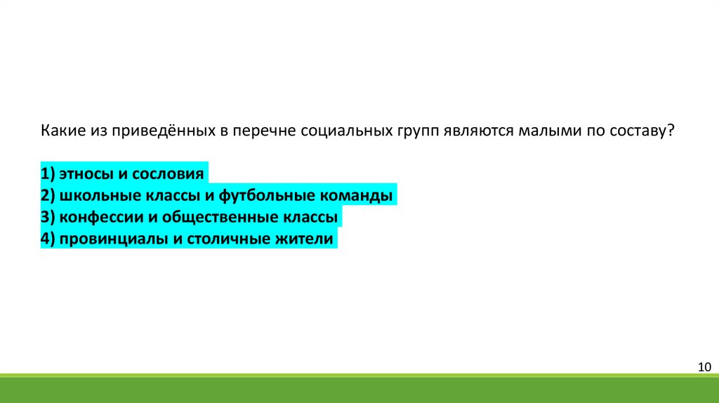 Какие из приведённых в перечне социальных групп являются малыми по составу?1) этносы и сословия