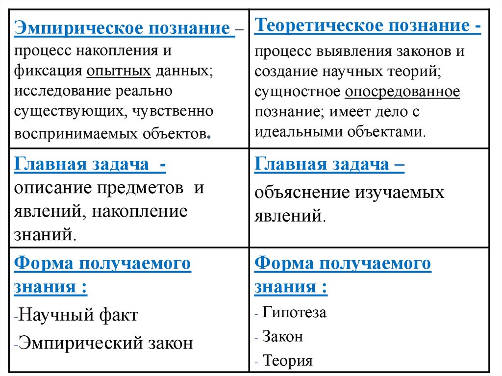 Эмпирическое познание – Теоретическое познание процесс накопления ификсация опытных данных;