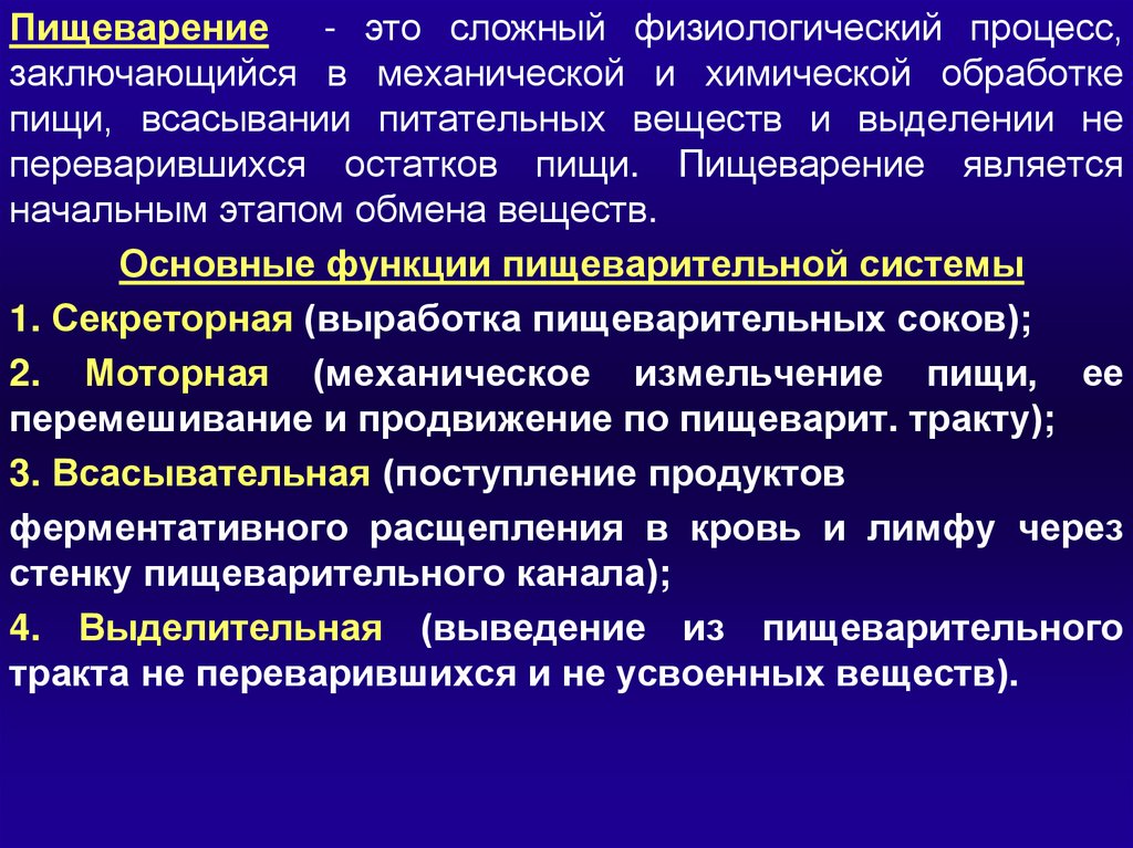 Пищеварение - это сложный физиологический процесс,заключающийся в механической и химической обработке