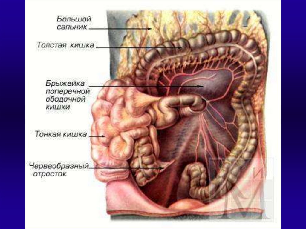 тощая, подвздошная, поперечная и сигмовидная ободочные