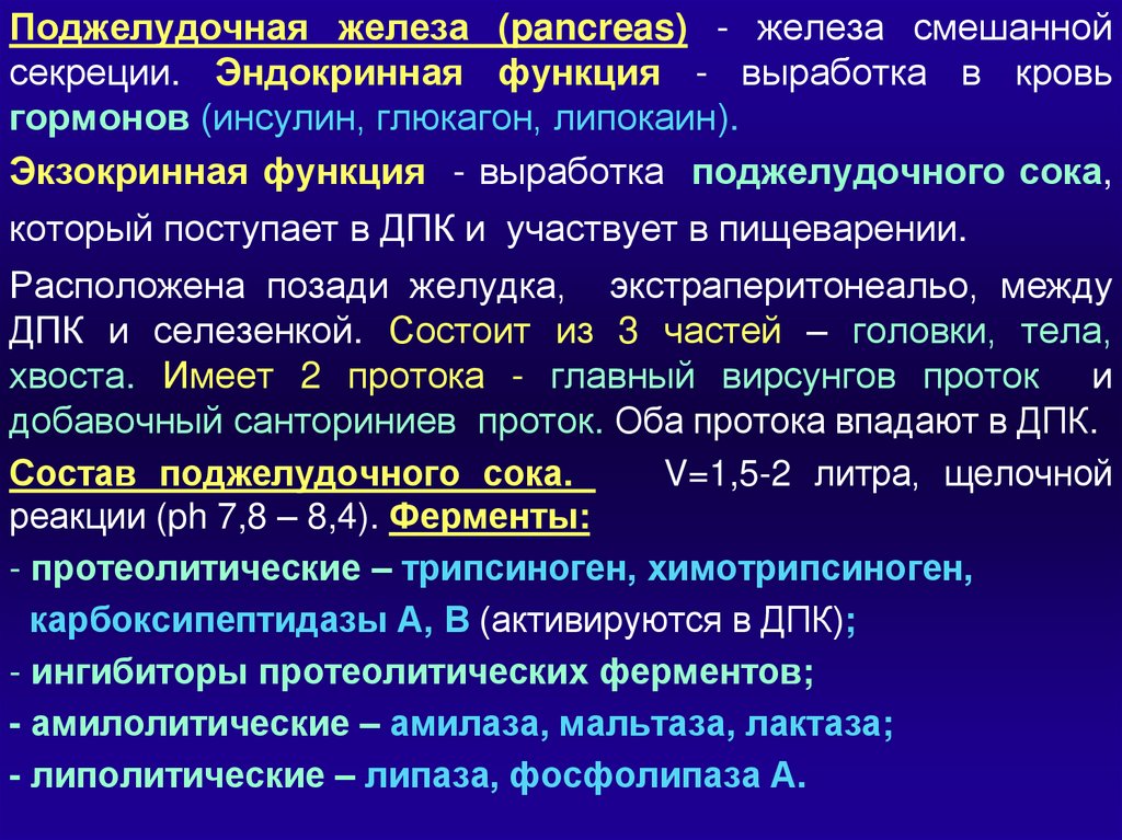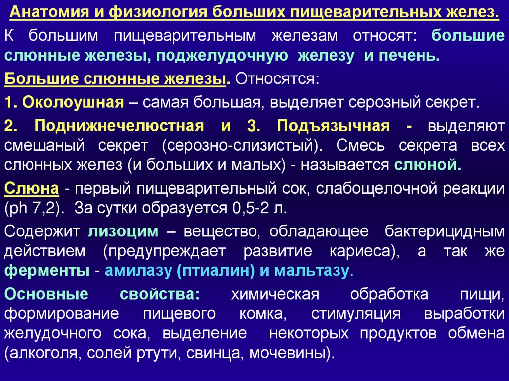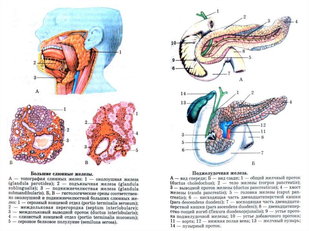 большие слюнные железы (БСЖ), поджелудочную железу и