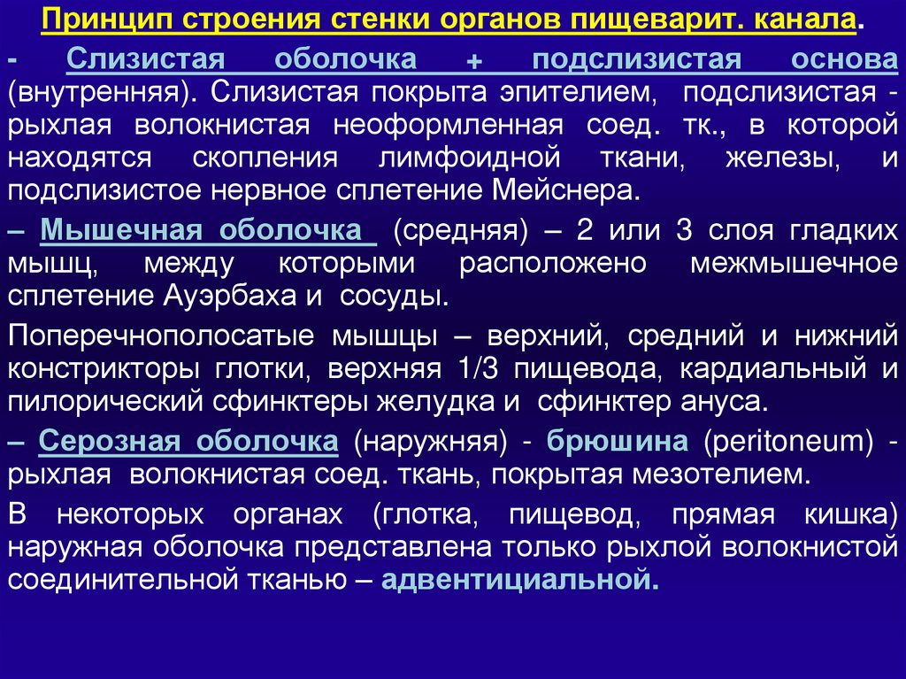 Принцип строения стенки органов пищеварит. канала.Слизистая