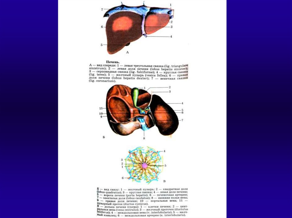 правую и левую, квадратную и хвостатую доли. Здесь же