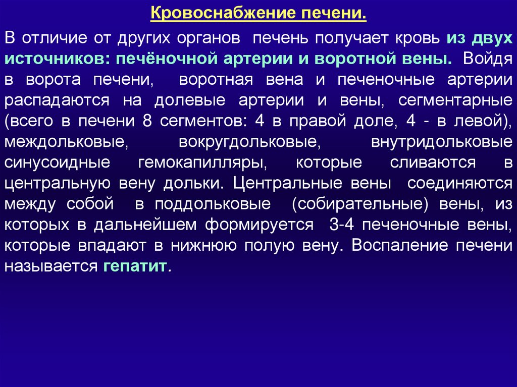 Кровоснабжение печени.В отличие от других органов печень получает кровь из двух