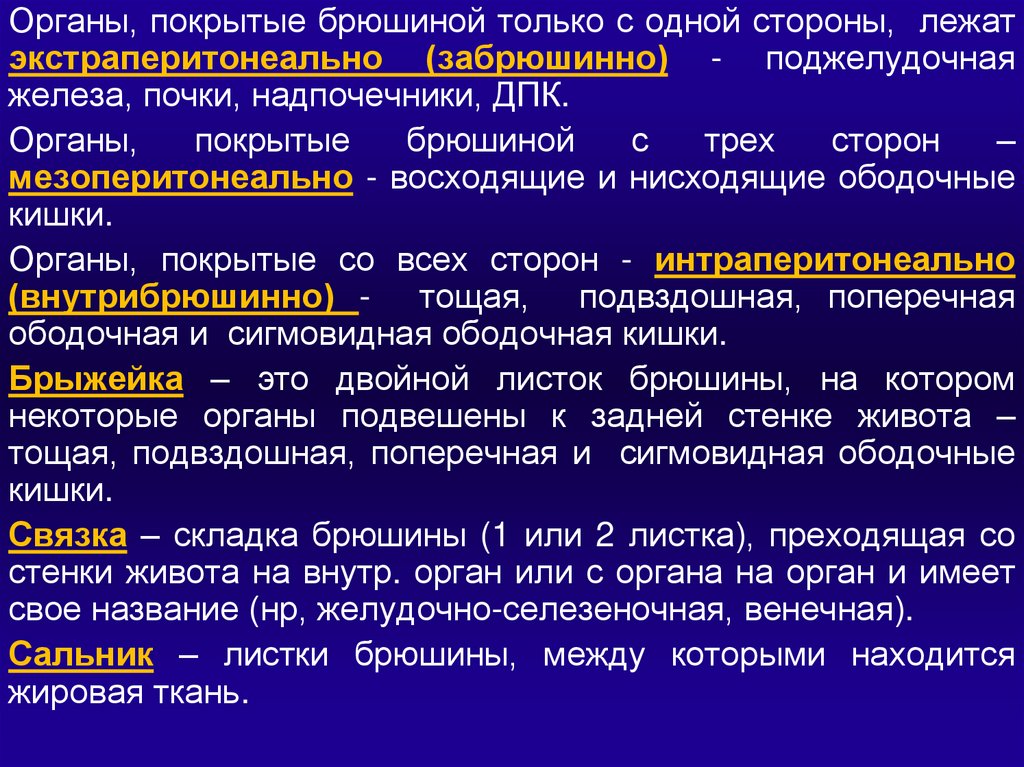 Органы, покрытые брюшиной только с одной стороны, лежатэкстраперитонеально (забрюшинно) - поджелудочная