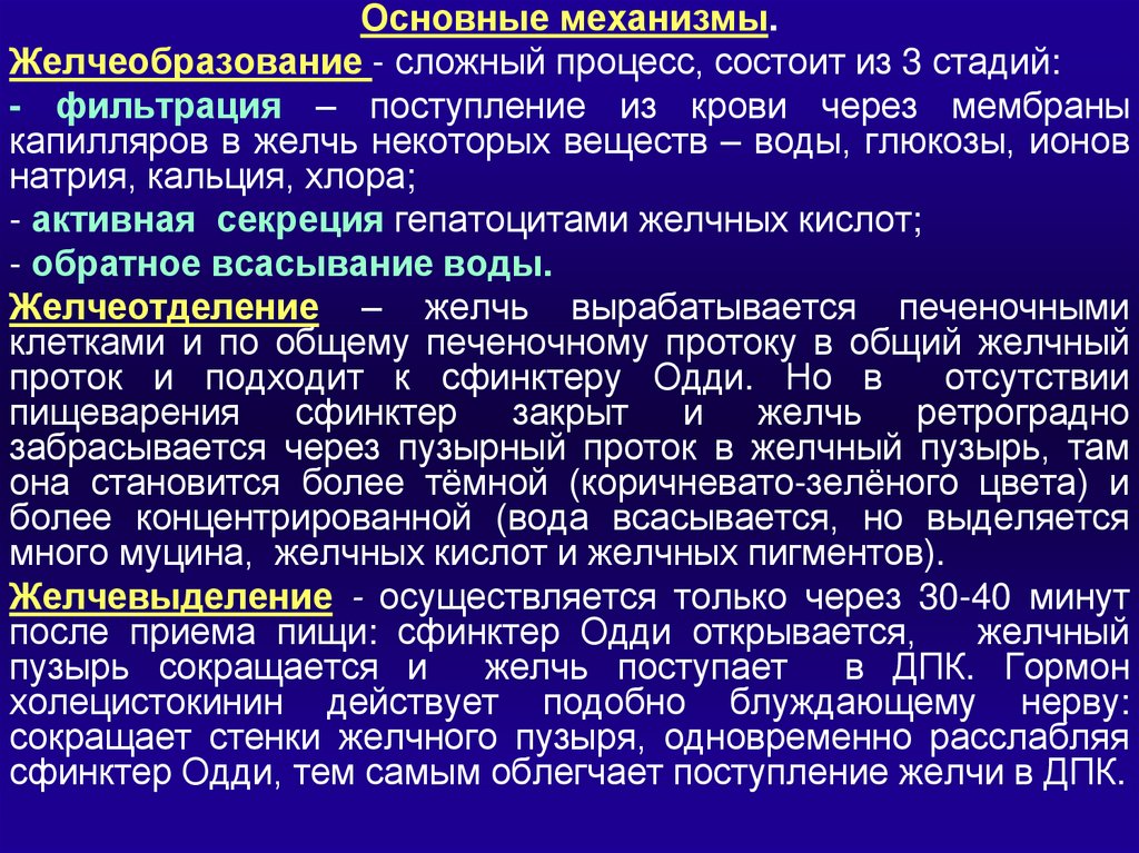 Основные механизмы.Желчеобразование - сложный процесс, состоит из 3 стадий: