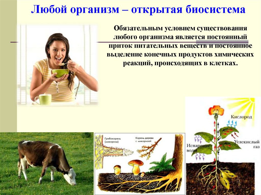 Любой организм – открытая биосистемаОбязательным условием существования