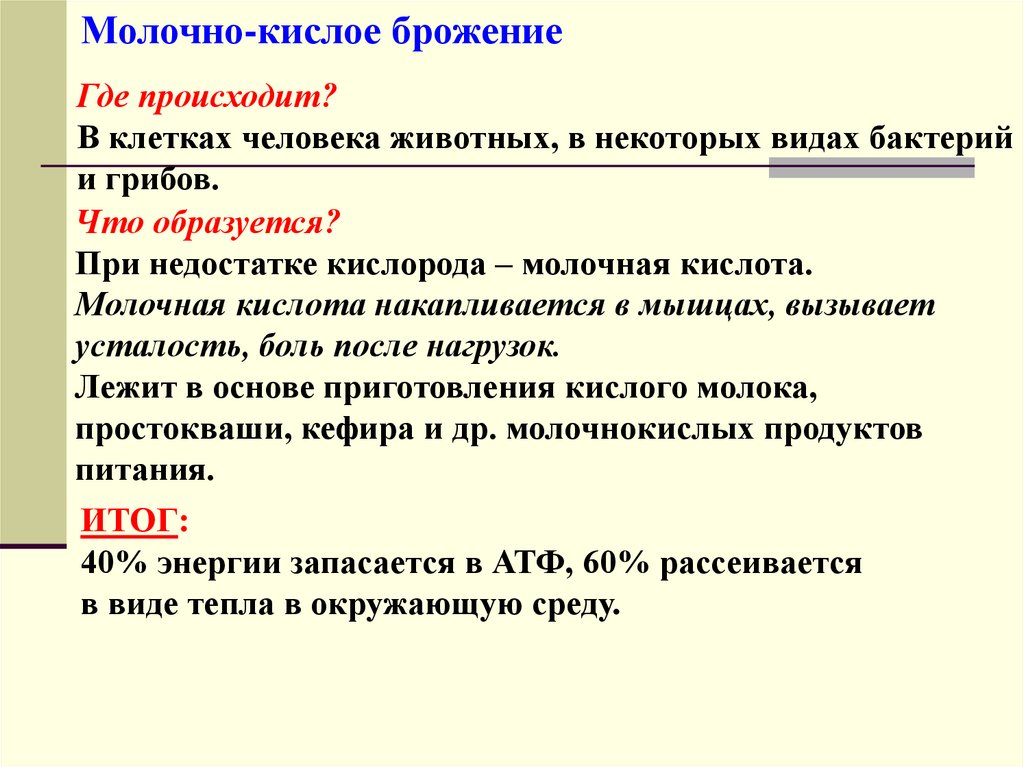 Молочно-кислое брожениеГде происходит?