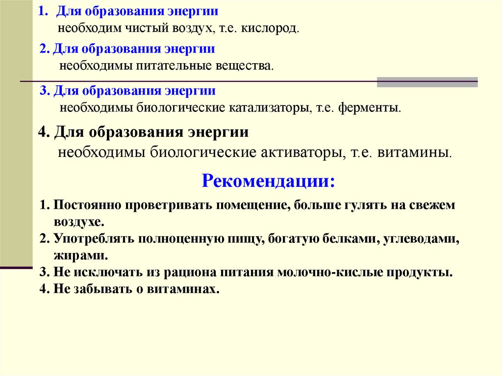 1. Для образования энергиинеобходим чистый воздух, т.е. кислород.