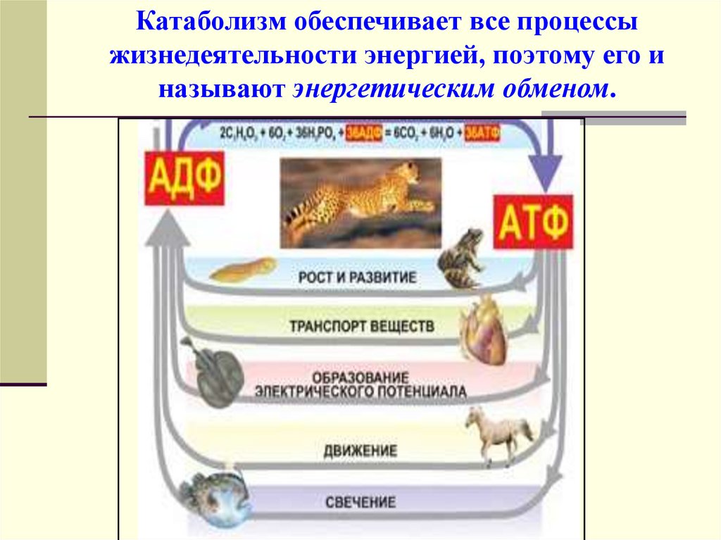 Катаболизм обеспечивает все процессыжизнедеятельности энергией, поэтому его и