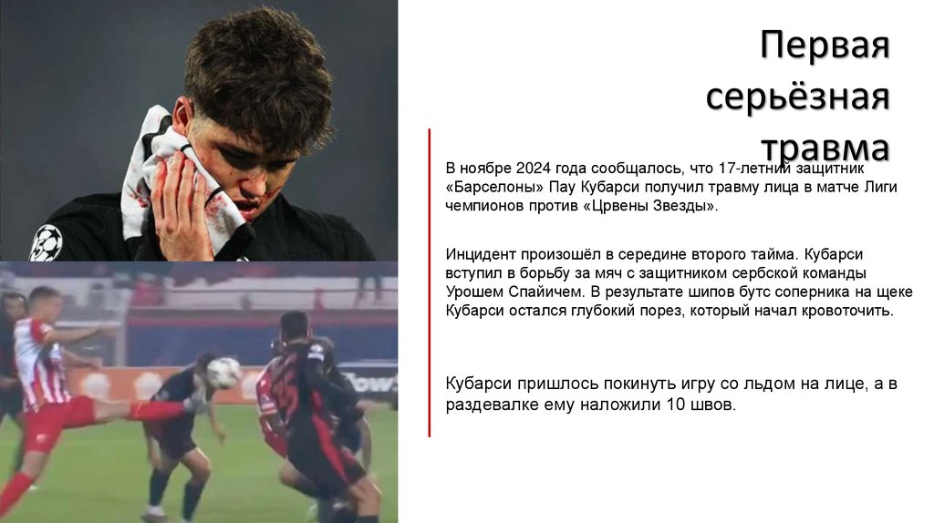 «Барселоны» Пау Кубарси получил травму лица в матче Лиги