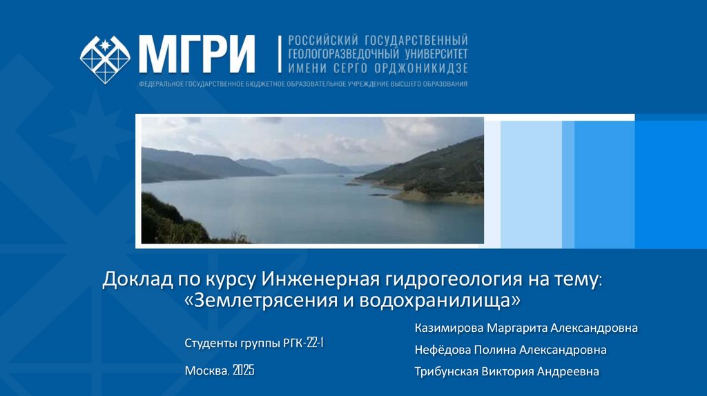 Доклад по курсу Инженерная гидрогеология на тему:«Землетрясения и водохранилища»