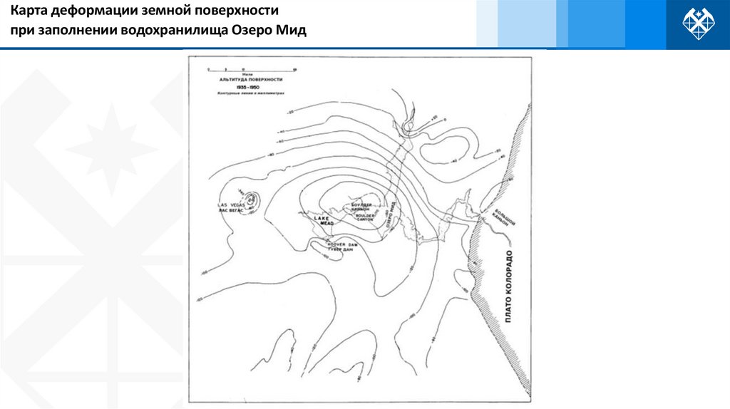 Карта деформации земной поверхностипри заполнении водохранилища Озеро Мид