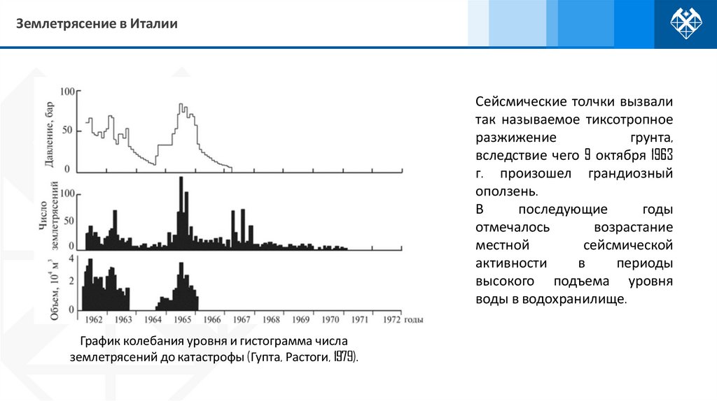 землетрясений до катастрофы (Гупта, Растоги, 1979).