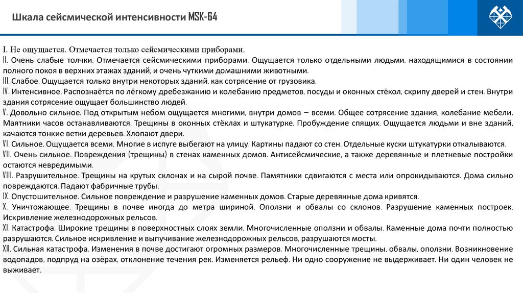 Шкала сейсмической интенсивности MSK-64I. Не ощущается. Отмечается только сейсмическими приборами.