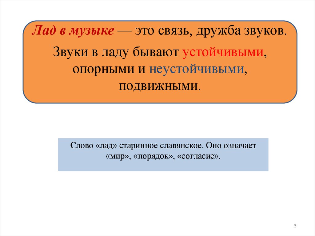 Лад в музыке — это связь, дружба звуков.Звуки в ладу бывают устойчивыми,
