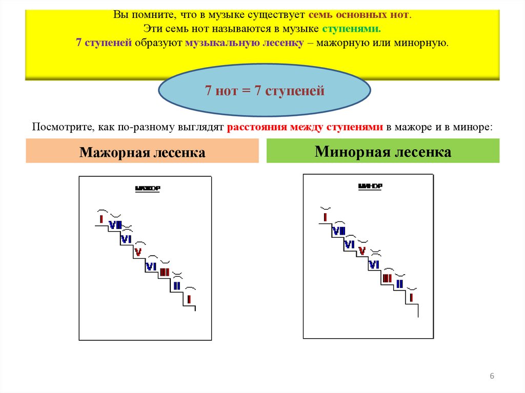 7 ступеней образуют музыкальную лесенку – мажорную или минорную.