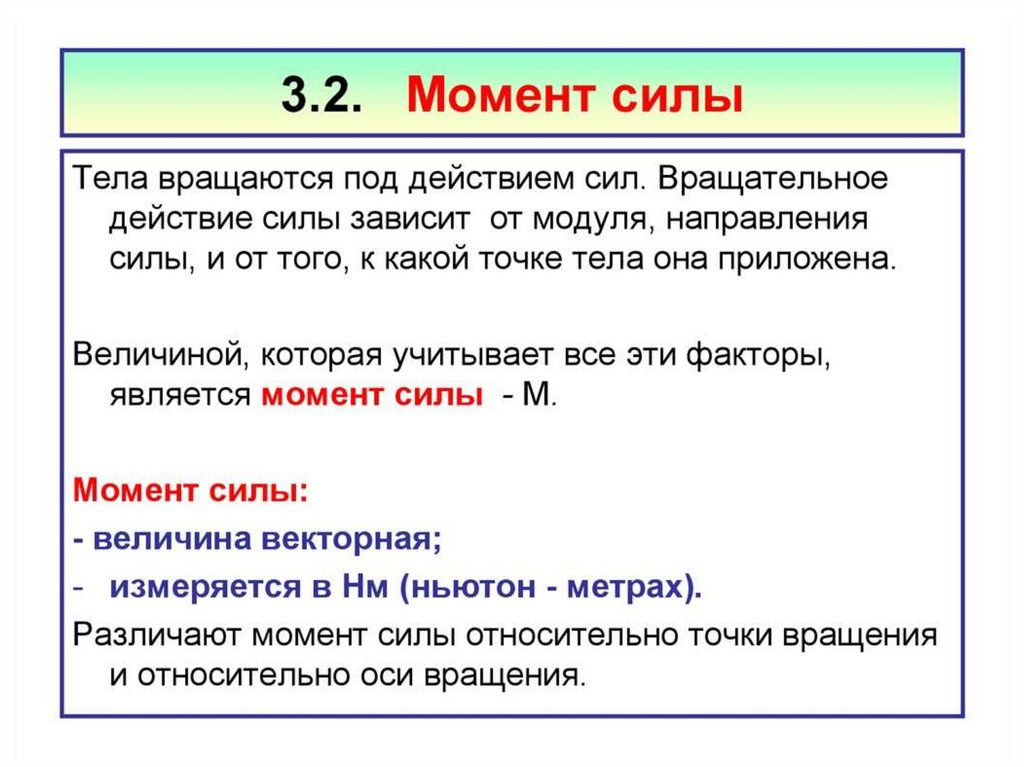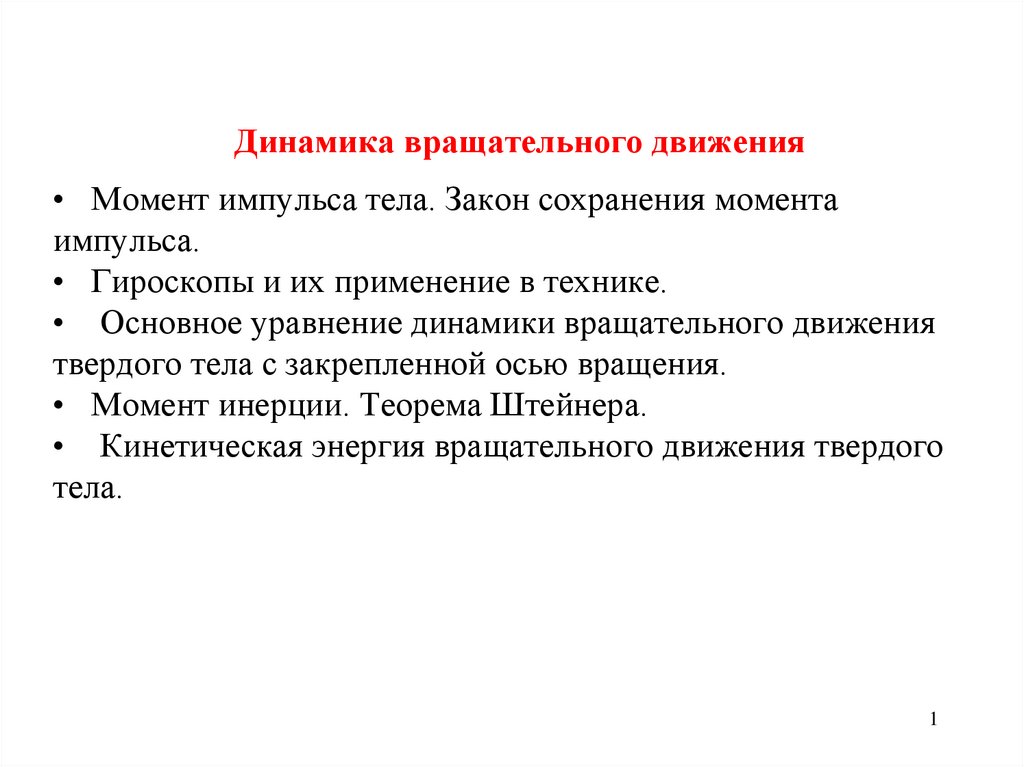 Динамика вращательного движения• Момент импульса тела. Закон сохранения момента