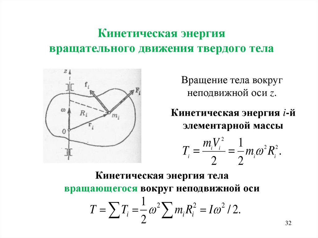 • Кинетическая энергия вращательного движения твердого
