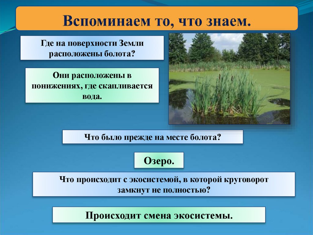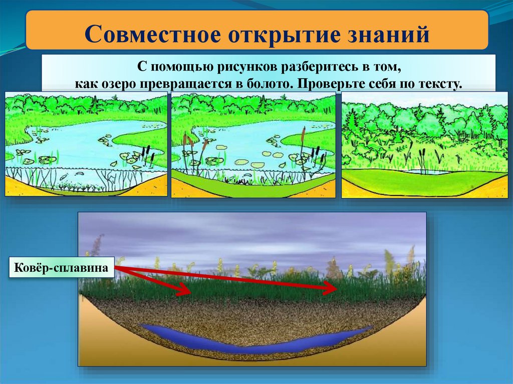Совместное открытие знанийСо временем толща торфа становится всё выше, а болото – суше.