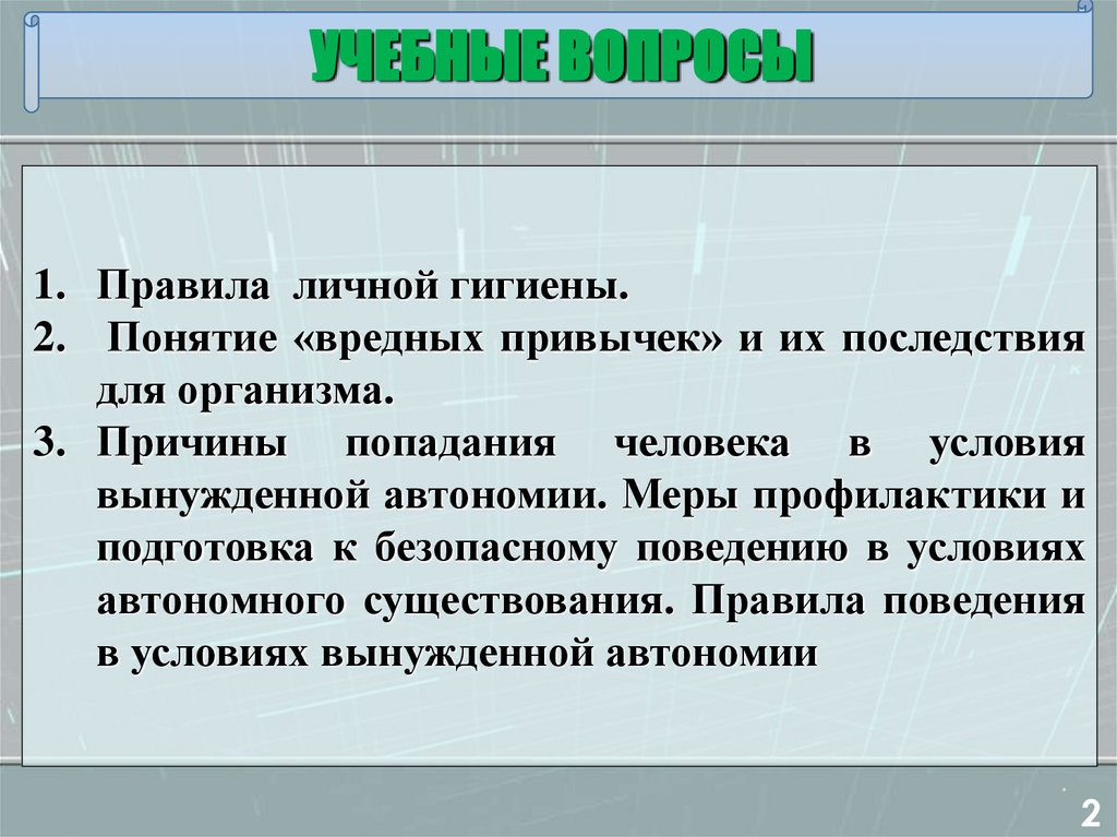 УЧЕБНЫЕ ВОПРОСЫ1. Правила личной гигиены.