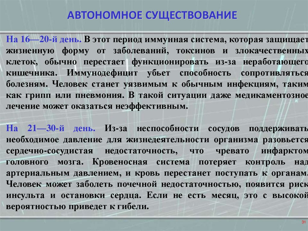 АВТОНОМНОЕ СУЩЕСТВОВАНИЕНа 16—20-й день. В этот период иммунная система, которая защищает