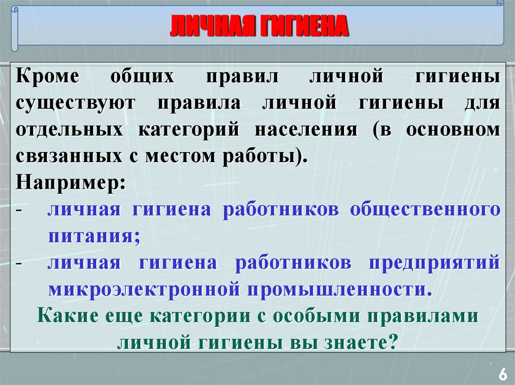 ЛИЧНАЯ ГИГИЕНАКроме общих правил личной гигиены