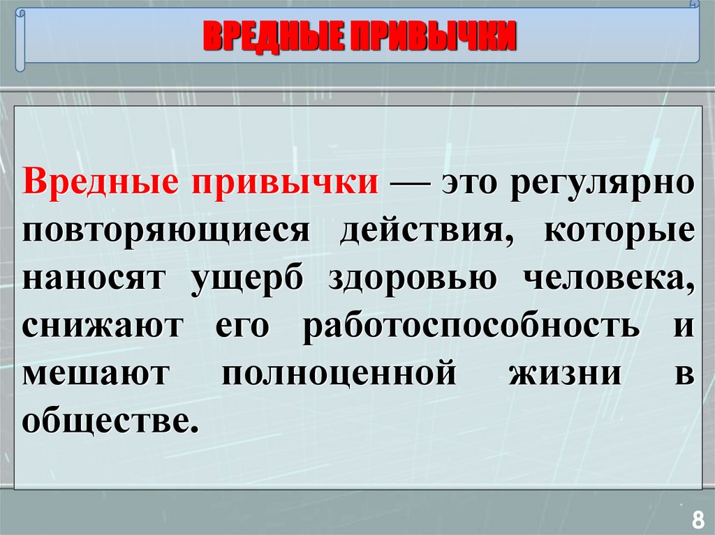 ВРЕДНЫЕ ПРИВЫЧКИВредные привычки — это регулярно