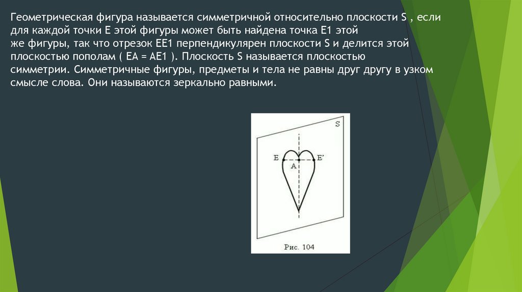 симметрии. Симметричные фигуры, предметы и тела не равны друг другу в узком