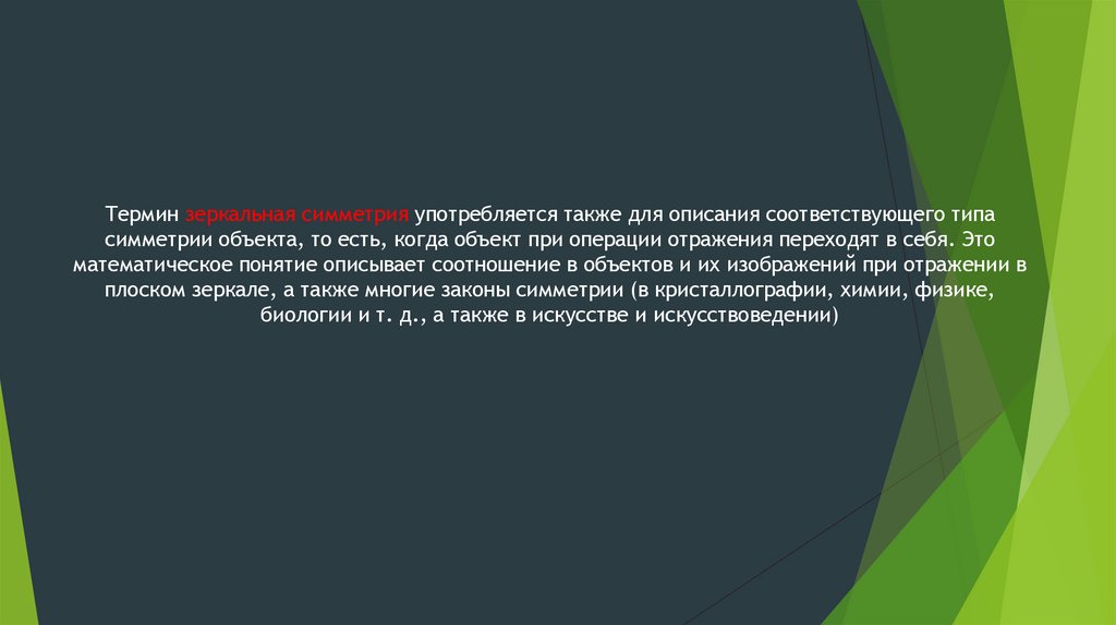 плоском зеркале, а также многие законы симметрии (в кристаллографии, химии, физике,